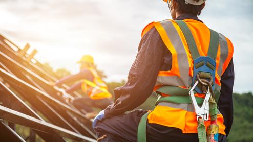 Im Dachdeckerhandwerk zählt der Team-Zusammenhalt. Gerade wenn es regnet, kann es z. B. sehr rutschig werden, was die Gefahr eines Unfalls erhöht. Wichtig ist es gerade in solchen Situationen, dass Du und Deine Kolleg*innen als Team zusammenarbeitet und Ihr Euch aufeinander verlassen könnt. Natürlich trägst Du dabei Schutzkleidung, Handschuhe und einen Schutzhelm, damit Du im Notfall vor Verletzungen optimal geschützt bist. Das Miteinander im Team, der Zusammenhalt und das Engagement im Dachhandwerk sind einzigartig. Überzeug Dich selbst.